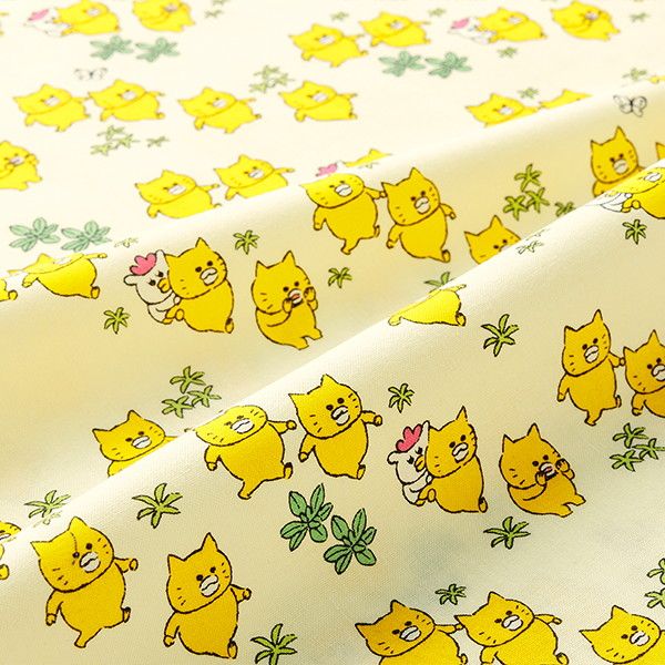 【ノラネコぐんだん】 ファブリック シーチング(50cmカットクロス/ノラネコさんぽ/うすきいろ)
